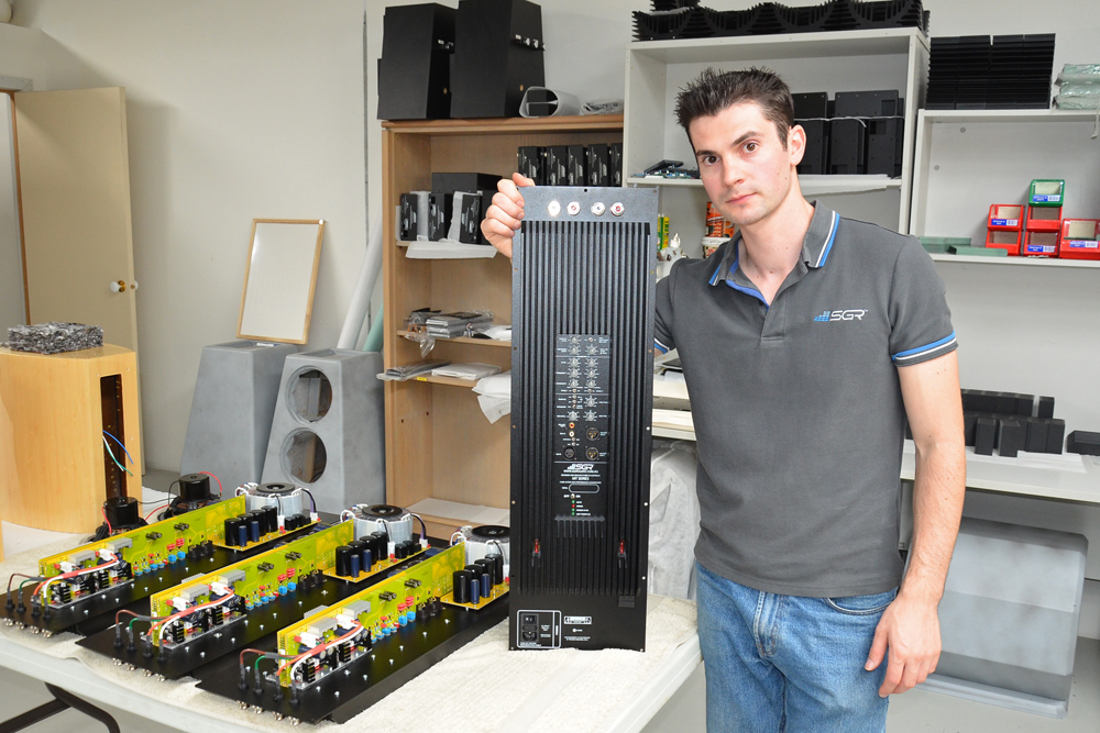 Proprietor Stuart Ralston shows SGR Audio’s Australian-made amplifier modules for the company’s active loudspeaker systems