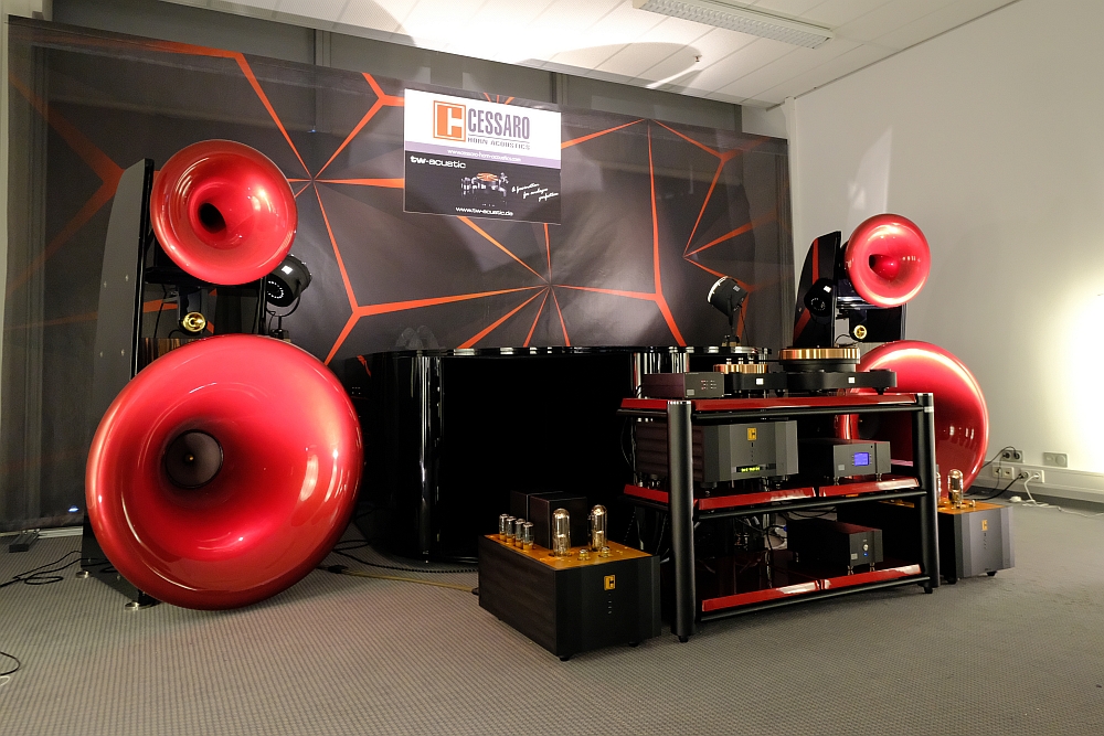 I make no secret of the fact that I find horn loudspeaker designs to have terrific strengths but some deficiencies too – but not universally. Here, with a TW-Acustic turntable mated to Cessaro electronics and speakers (including the massive Cessaro bass horns) the sound was effortless, detailed and thoroughly dynamic with no hint of horn colouration. In fact, even under show conditions, the issues I find insurmountable (a personal thang) with horn systems were mostly not evident here. One of the very best at HEM 2019.