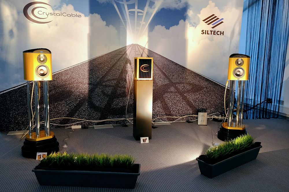 This year, as far as standmount speakers go, about the best I heard were the Crystal Cable Arabesque Minissimo Scala mated to the company’s CCI integrated amplifier. The cable choice for the display was a mix of Future Dream (see the full review here) and Ultimate Dream. The Arabesque speakers sounded far more dynamic than they have a right to be at the size, and combined that effortless sound with a full sounding bass register (within the laws of physics), exciting detail, precise resolution and an overall presence which subsequently had me re-navigating the MOC’s corridors for a second prolonged listen.