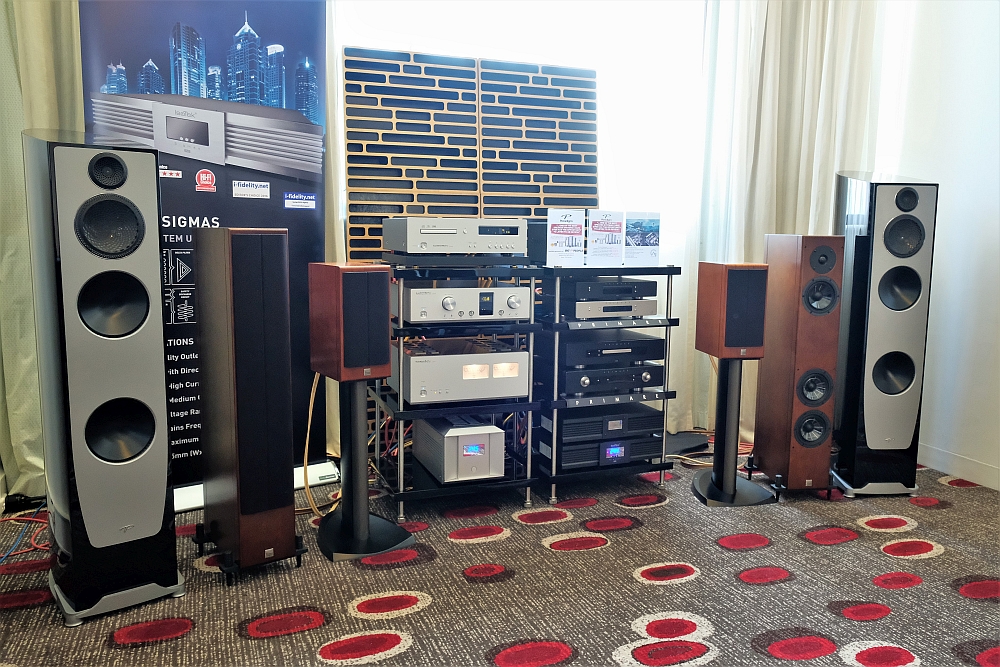 Osborne Loudspeakers’ massive Grand Monument Reference (near AU$23,000) in a gorgeous semi-gloss finish were being driven via Audio Aero digital, Consonance analogue, AM Audio RT-2 Silver Wiring Version preamplifier (AU$7,650) and AM Audio 833M Ultimate Silver Version monoblock amplifiers (AU$14,850). A big and expansive sound with oodles of detail.