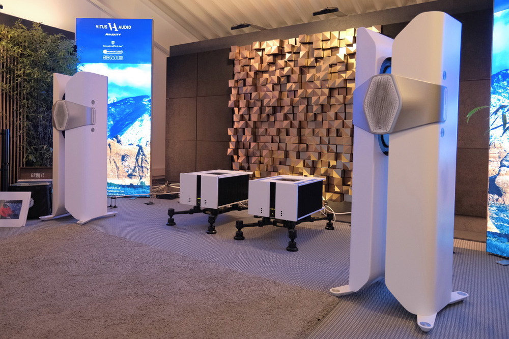 A couple of HEMs ago, I heard a late prototype of Monitor Audio’s exceptional Hyphn speakers. This year, Denmark’s Vitus Audio used its excellent electronics with Hyphn to provide a truly superb sonic performance. Digital source was by Vitus’ sister company Alluxity (also part of the AVA Group) while analogue playback was courtesy of a reel-to-reel machine and SME’s Model 60 range topper fitted with the new Series VA tonearm. Of course, a squadron of Vitus electronics including streamer, CD player, preamplifier and all crowned by the massive SM-103 Class-A monoblock amplifiers. Incidentally, Vitus was announcing a new in-built phono stage for the SIA-030 integrated amplifier and an advanced prototype of an upcoming SM-025 amplifier. In a stroke of aesthetic genius, almost the entire Vitus electronics team (barring the phono stage) was clothed in stunning white, a tone matching the Hyphn’s own brilliant white finish. As I entered the room, aside from being warmly greeted by Ole Vitus’ wife Britta (the man himself was in continuous meetings through my two visits there), I was also met by a very realistic female vocal projecting from the majestic spatial qualities of Hyphn. The electronics and speakers combo made a dramatic illusion of space and images within it, even in the challenging acoustics of a relatively small room and under show conditions. In other words, it was a ginormous spatial presentation with full-bodied imaging. And then there were those vocals…