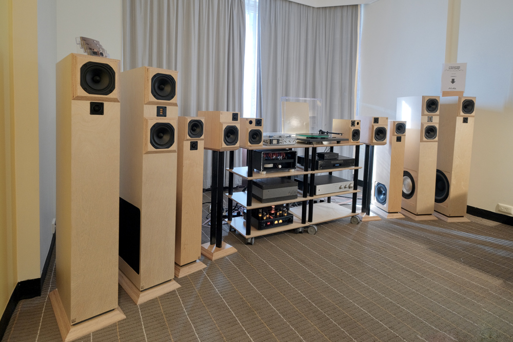 Jean-Marie Lière’s Microphase Audio Design has been a staple for the last few Australian shows. On show was a variety of the company’s designs including the SAT MK3 standmounts as well as the relatively new, and very impressive, Tower 3 and Tower 4 floorstanders. A short listen confirmed the usual MAD strengths of detail, resolution, and dynamic expression but with a reinforcement in the low frequencies and a filling-out of the lower midrange. In addition to CD and vinyl playback, Lière spun a variety of tape recordings – including his own – via his modified Stellavox machine. Holton Precision Audio and Quad were used for amplification.