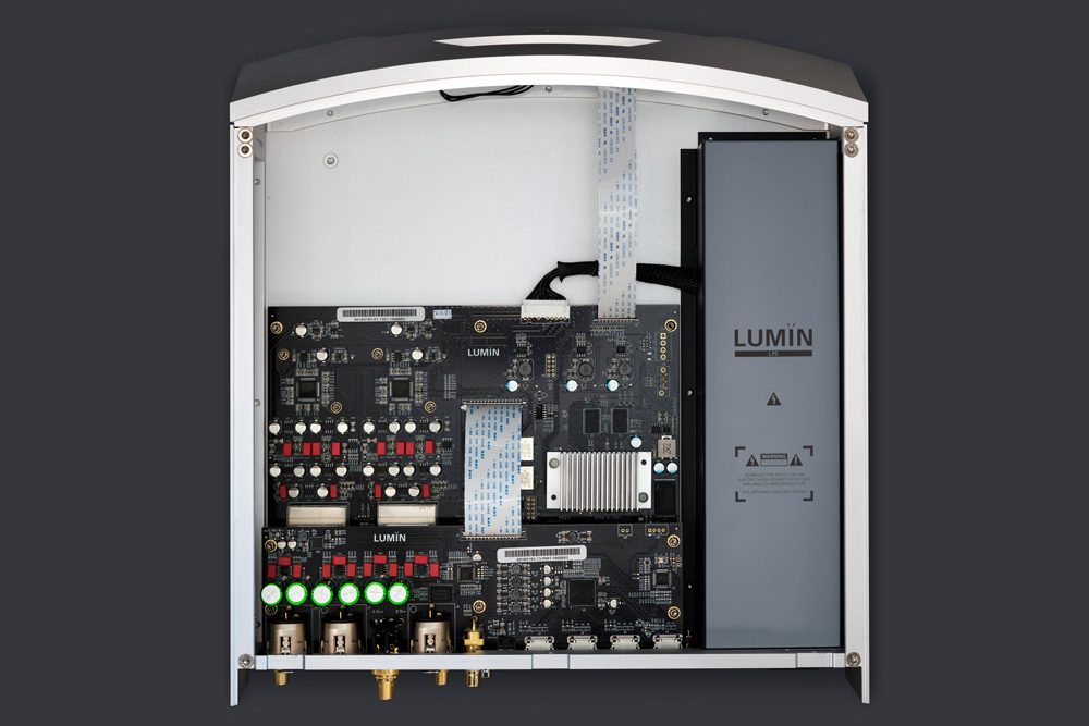 Digital-to-analogue conversion uses the highly-regarded ESS Technology’s ES9028PRO DAC chips in dual mono configuration. The circuitry is dual mono throughout and Lumin uses its Femto Clock with FPGA technology on-board. Further connectivity includes an RJ45 Gigabit Ethernet socket, a USB input for storage devices (including USB thumb drives) and a fibre network port.