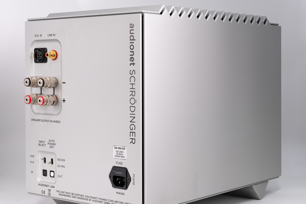 The Schrödinger’s power rating is 400 watts into 8 ohms, 750 watts into 4 ohms, and the rating for 2 ohms is sated as 1,200 watts. Again, an ultra-wide frequency response is given to span from 0 Hz to 600 kHz (-3dB). The Signal-to-Noise Ratio (SNR) is quoted as being under 128 dB while the damping factor is a high 2000 at 10 kHz and 10,000 at 100 Hz. Input impedance is said to be 37 kohm via RCA and 3 kohm on XLR.